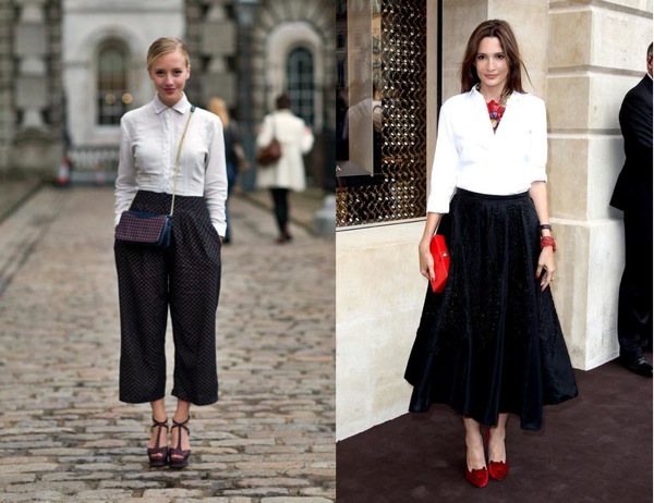Bạn hãy thử kết hợp áo sơ mi trắng cùng với quần ống rộng cắt ngắn (cropped wide leg pants) đang là xu hướng của mùa này nhé, hoặc bạn có thể mặc cùng chân váy midi (dài đến bắp chân) để tạo nên phong cách cổ điển. Hãy chọn một chi tiết làm điểm nhấn trên set đồ, đồng thời tối giản các item và phụ kiện còn lại để giữ được nét thanh lịch.